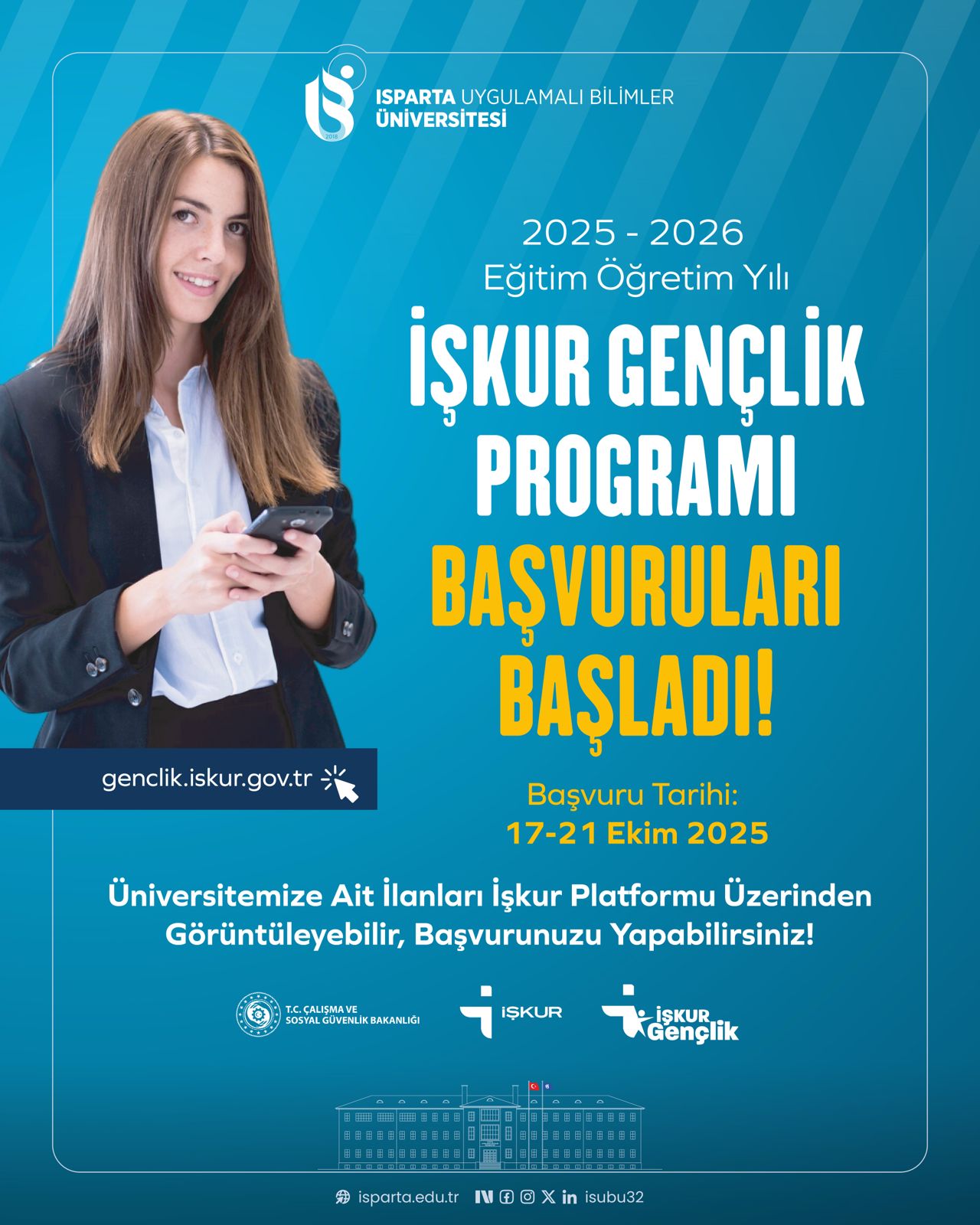 Başvurular, 17-21 Ekim 2025 tarihleri arasında genclik.iskur.gov.tr adresinden yapılabilecek. Ayrıca, İŞKUR Gençlik Platformu, İŞKUR Mobil Uygulaması veya ALO 170 İletişim Hattı üzerinden de başvuru işlemleri gerçekleştirilebilecek.